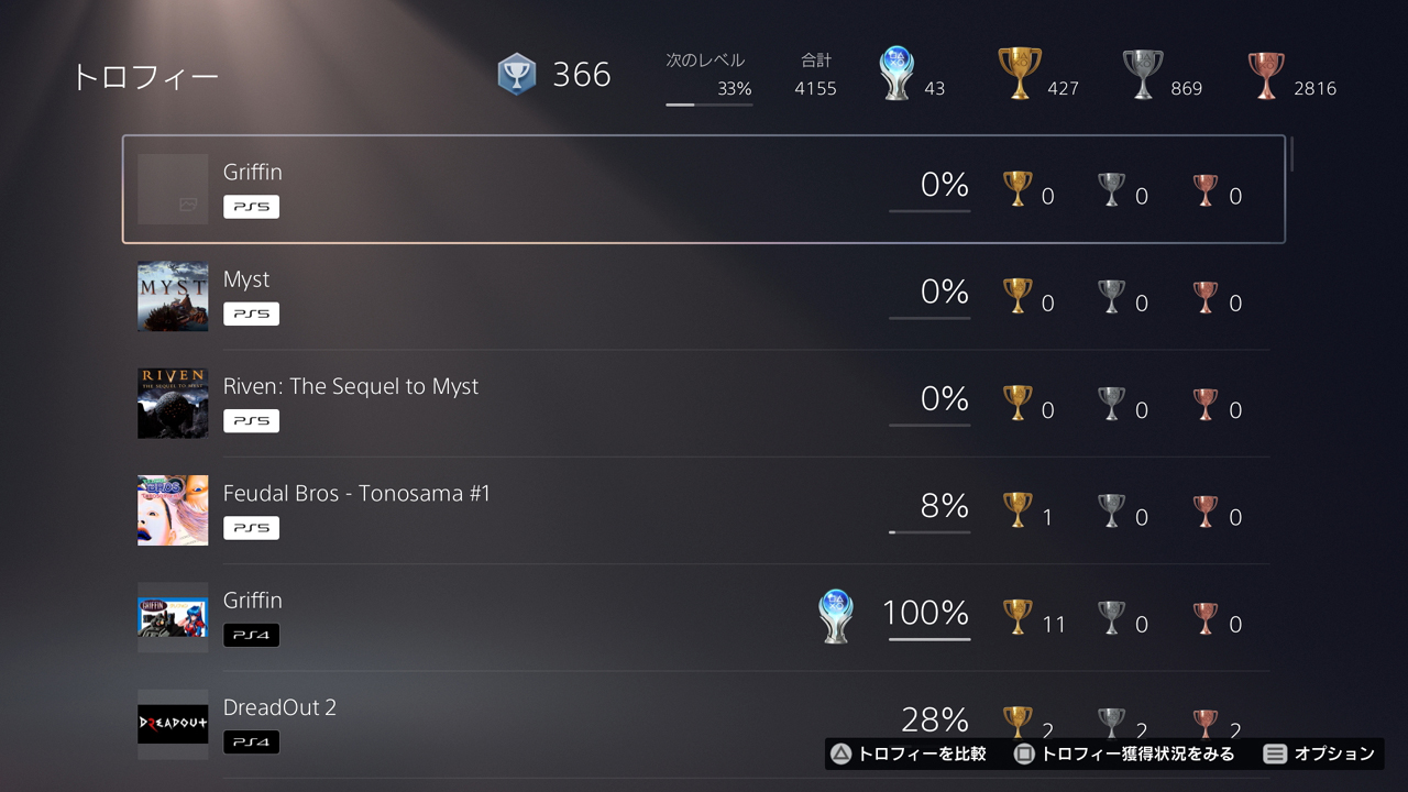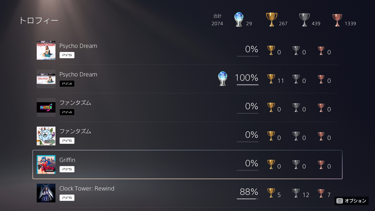 あと、Amazon に 1 件だけあるパッケージ版のレビューでは「トロフィーがない」と書かれており、なんとパッケージ版はトロフィーがない状態だったらしい。PS のゲームで、そんなことあるんだ……。