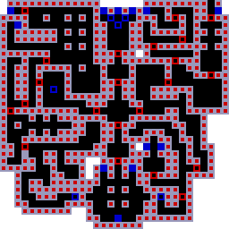 攻略順としては、まず X-23 , Y-29 にある合鍵(9)を拾い、X-04 , Y-02 の扉を合鍵で開け、X-02 , Y-02 の宝箱を合鍵で開けて大金槌(10)を入手する。あとは大金槌で壊せる壁を壊していくだけで次のエリアへ行ける。探索を完璧にすると、合鍵(9)はこのマップだけで使い切るようになっている。